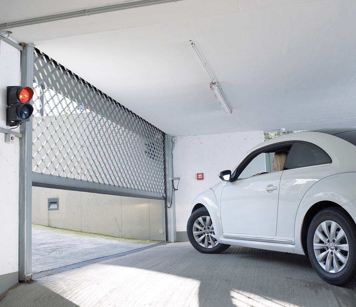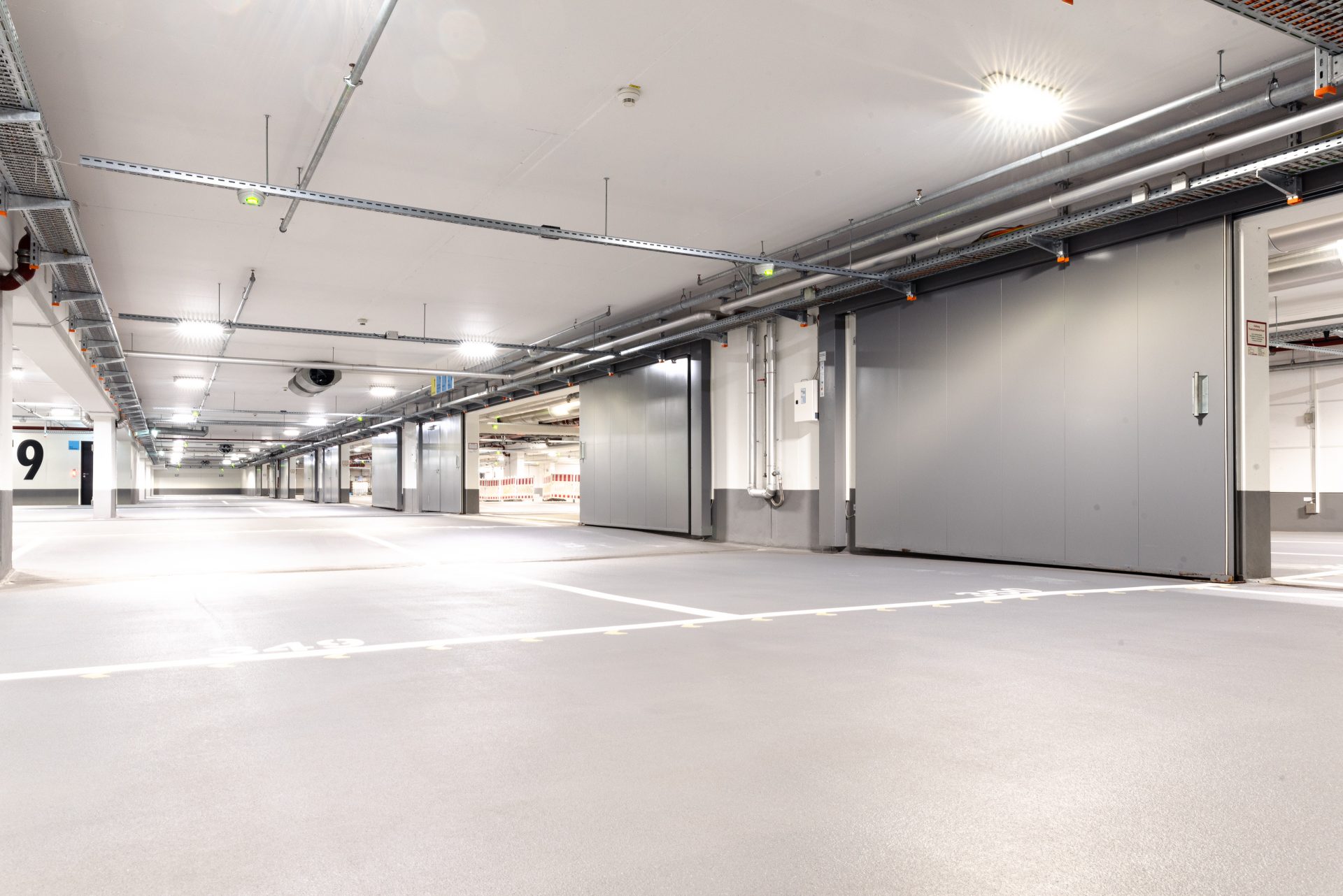 Leerer Parkhausbereich mit Türen